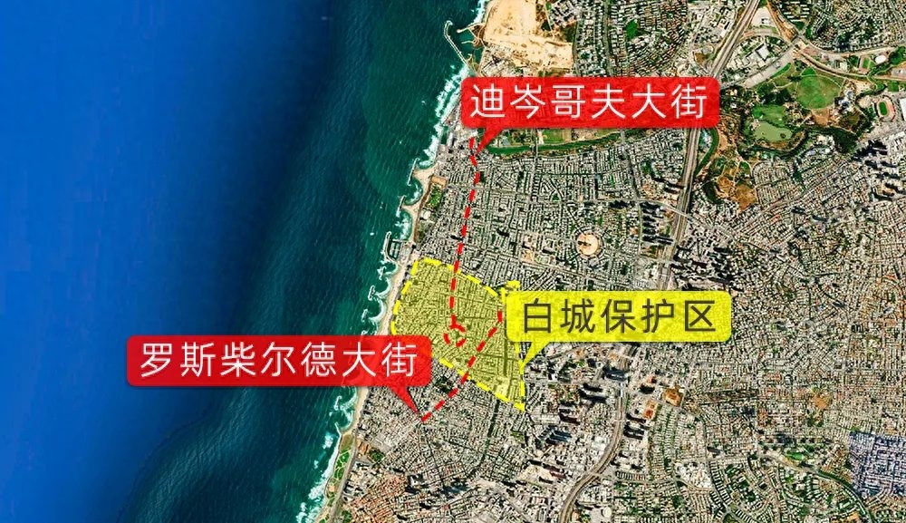 随着特拉维夫城市的扩张,特拉维夫依然延续了原有规划肌理。城市沿着主干道包裹着白城向外扩张,其中包括向南被誉为「硅谷大道」的罗斯柴尔德大街(Rothschild)和北向延展的迪岑哥夫大街(Dizengoff)。